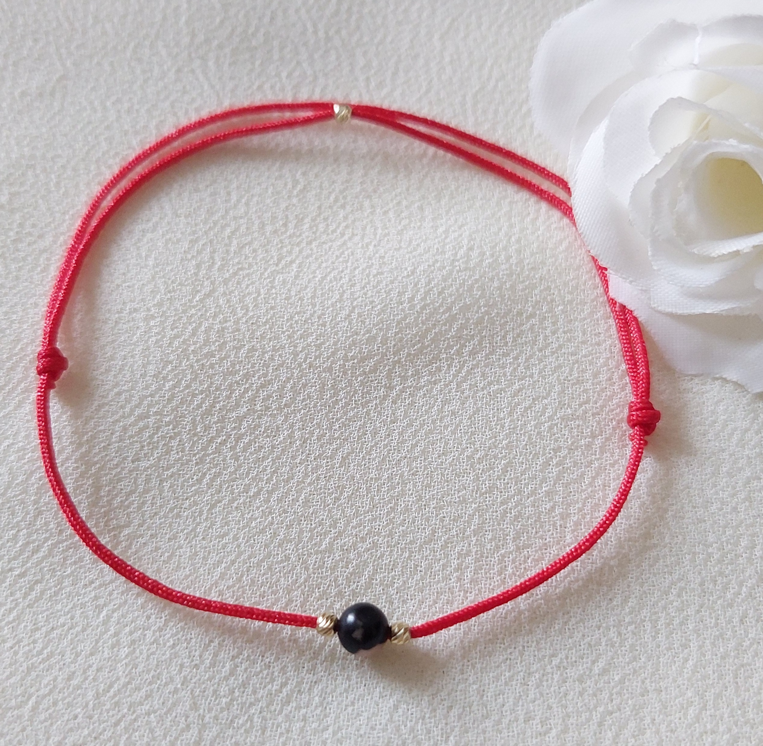 Brățară circulară reglabilă, cu șnur roșu, piatră semiprețioasă Rodonit înfrumusețată cu biluțe striate din Aur 14K de 2 mm. Culoarea roșie simbolizează adesea iubirea, fericirea și bunăstarea. Astfel, purtarea unei brățări cu șnur roșu este considerată un act de apărare împotriva influențelor negative, având rolul de a aduce noroc și prosperitate purtătorului. Piatra semiprețioasă Rodonit este piatra norocoasă a nativilor din zodiile Taur, Leu, Balanță, Scorpion, Capricorn. Fiind un produs lucrat manual în atelierul nostru, bijuteria nu se vinde la gram. Se vinde ca și piesă/ bucată. Chiar și în aceste condiții pot exista diferențe de culoare între pozele de prezentare și produsul comandat. Se poate realiza pe dimensiunea dorită și orice culoare la șnur, menționând în secțiunea ,, Note comandă (opțional)”.
